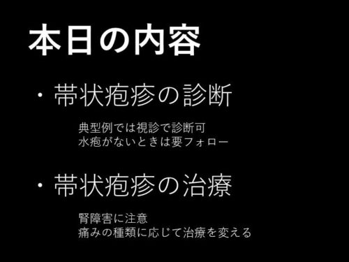 今回は帯状疱疹の診断と治療についてです。